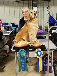 Owner, Lisa Bernstein with Charms Callie Rose UDX "Callie" and OTCH Charms D Sky's The Limit UDX4 OM5 "Skylar" ![]() |